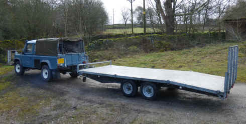 Below Bateson Heavy Duty 3.5 ton chassis,16 ft 4 inch Auto Hydraulic tilt alloy bed beaver tail vehicle transporter trailer with 3ft.6 inch drop down see through tailgate. Front 4 ft 4 inch "A" frame, 6ft 5 inch width. Will load lowest of vehicles and plant, I have loaded industrial sweepers they are the lowest of the low ! plus ride on mowers. It will load Landrovers without tilting. Heavy duty jockey wheel, Hitch lock & very strong security chain. Drive on self tilt and lock plus manual hydraulic pump tilt can be used to change wheels with blocks at rear of chassis. Extra lashing H/D rings plus rope hooks. Custom Built new to order for me. Side inserts for panels. very low mileage. Two head boards, one tube wheel stop and one flat standard with winch port. tyres are original, 2 x spares unused and one is securely stored under forward bed. Serviced by manufacturer. Complete with four vehicle tyre ratchet straps. Anti theft motor cycle security chain with Abloy padlock.