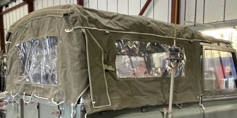 New canvas hood with side windows test fitted only ,including a NOS bulkhead fume curtain.